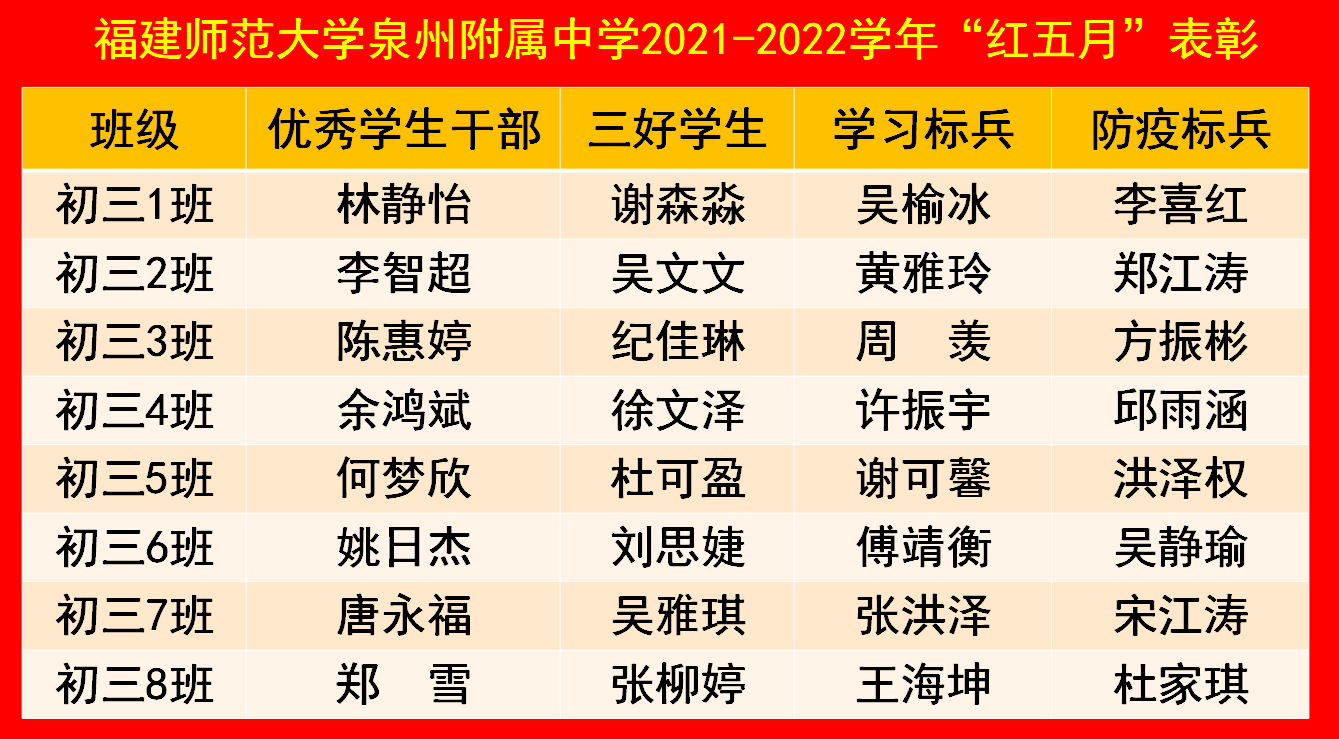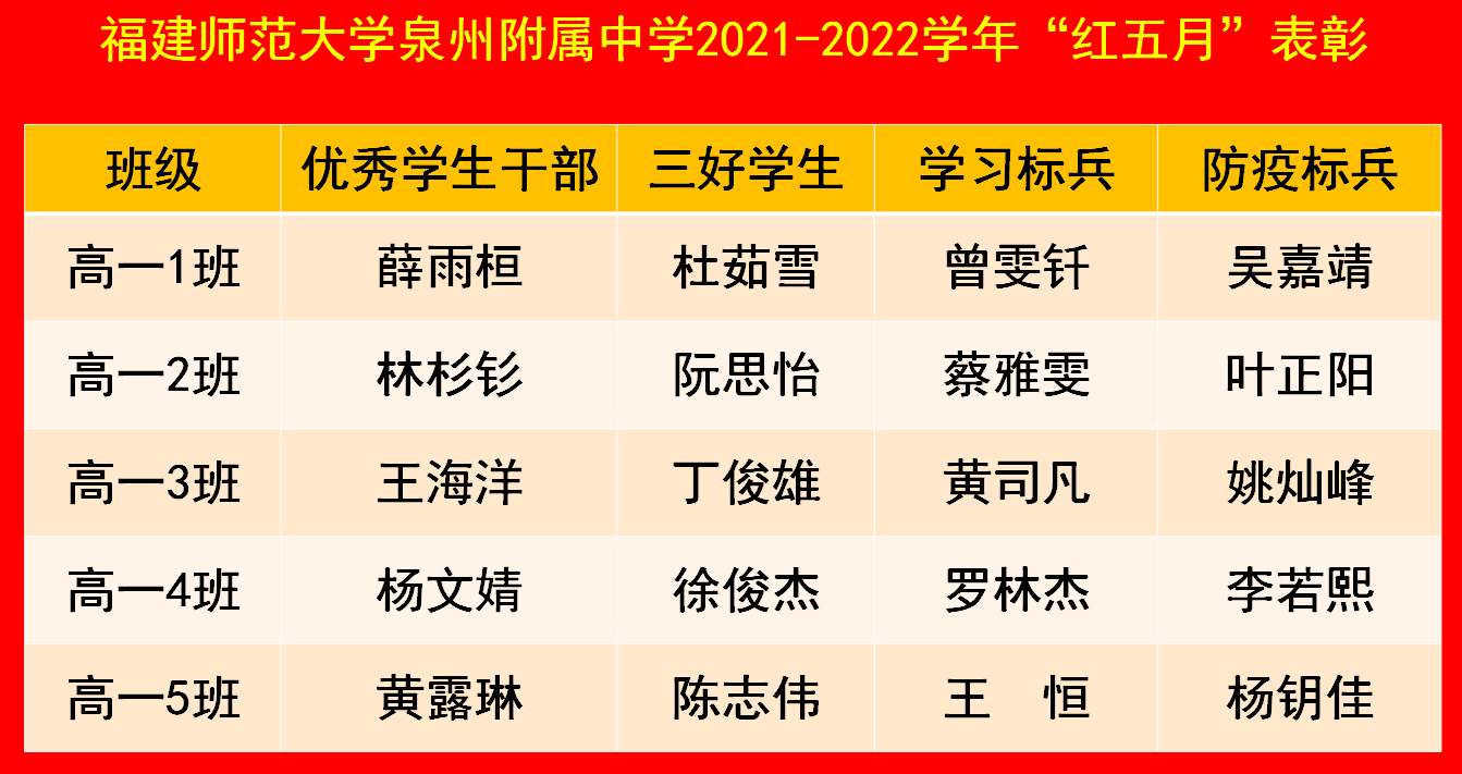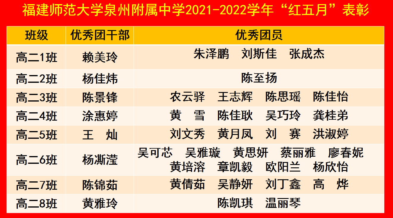 福建师范大学泉州附属中学2021-2022学年“红五月”表彰