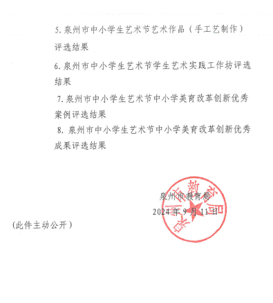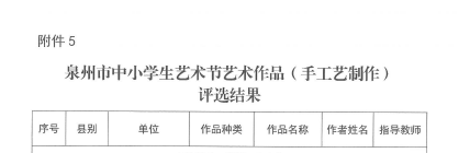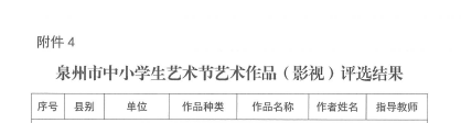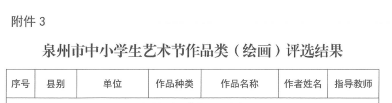 泉州市中小学生艺术节艺术作品等项目评选结果的通知
