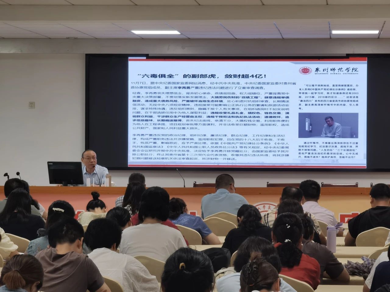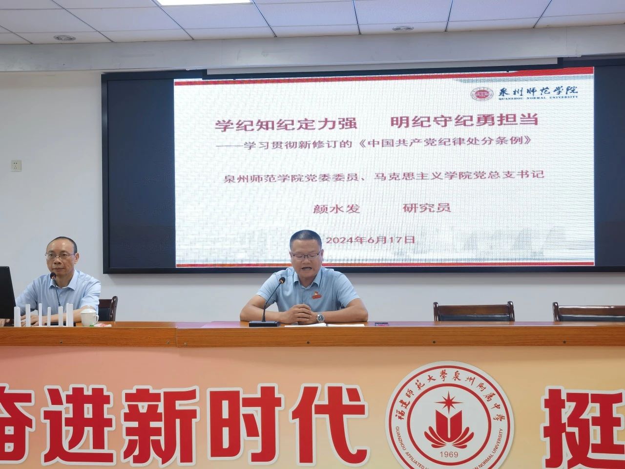 为深入学习《中国共产党纪律处分条例》,推动党纪学习教育走深走实,6月17日下午,福建师大泉州附中党总支邀请泉州师院马克思主义学院党总支书记颜水发做专题辅导讲座,全体党员、行政、教研组长、备课组长参加学习。