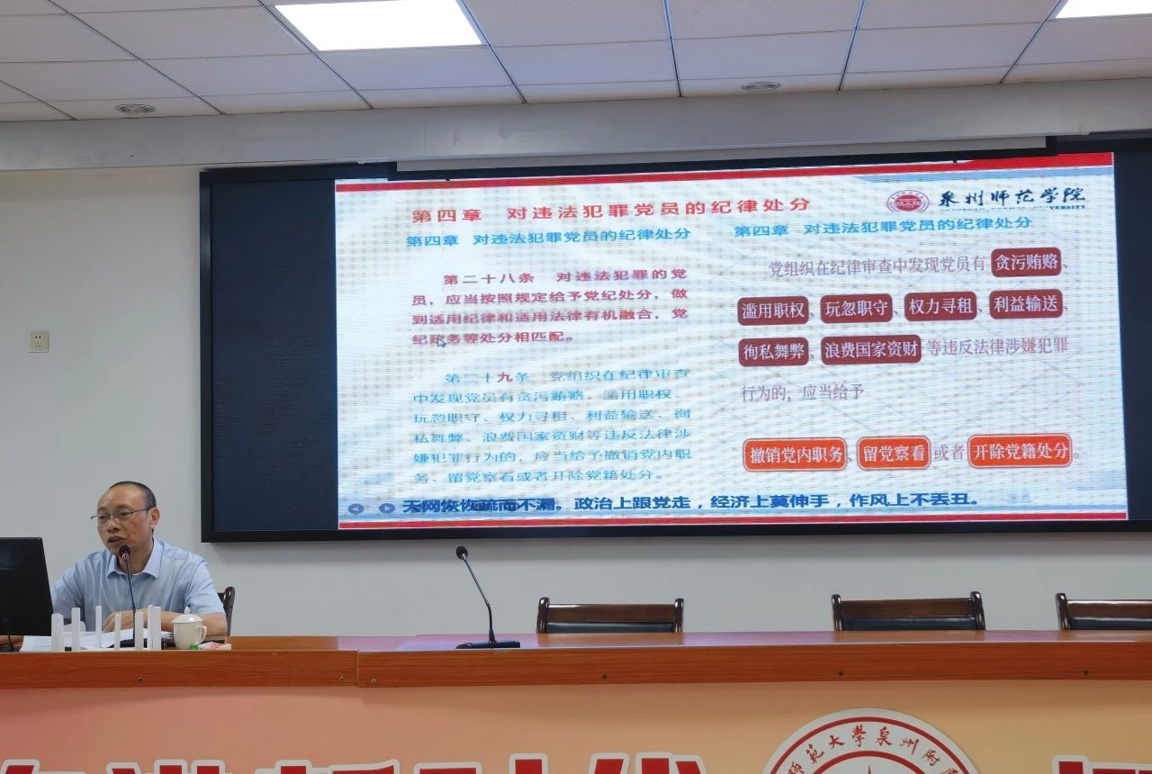 【附中党建】《学纪知纪定力强,明纪守纪勇担当》——福建师大泉州附中党总支开展学习《中国共产党纪律处分条例》专题讲座