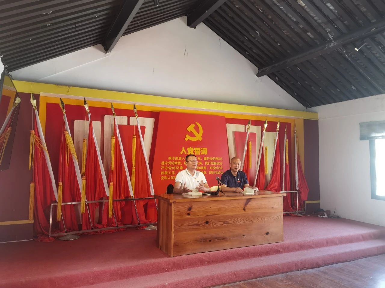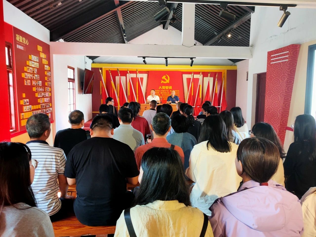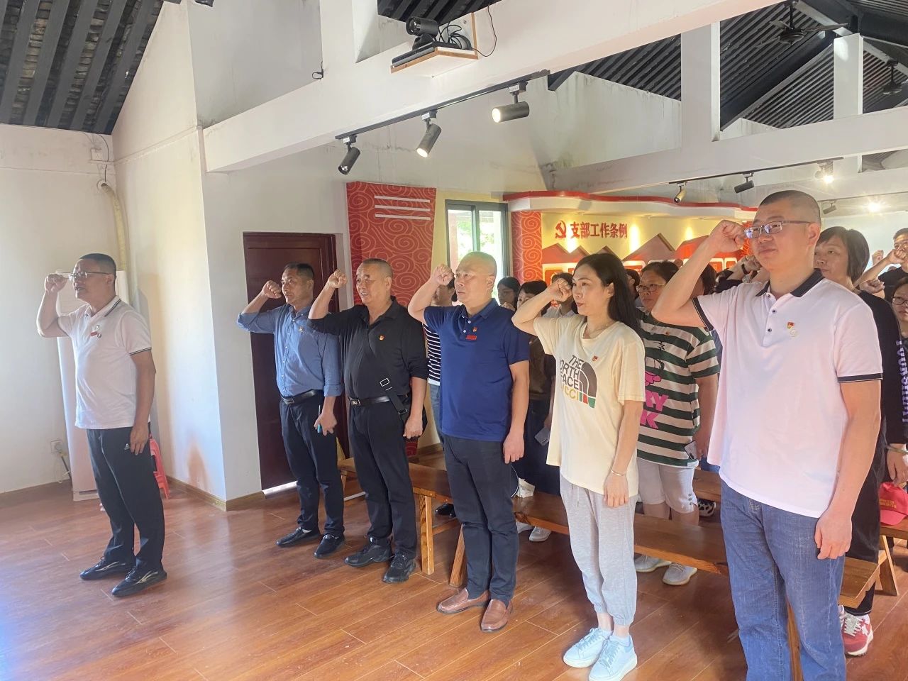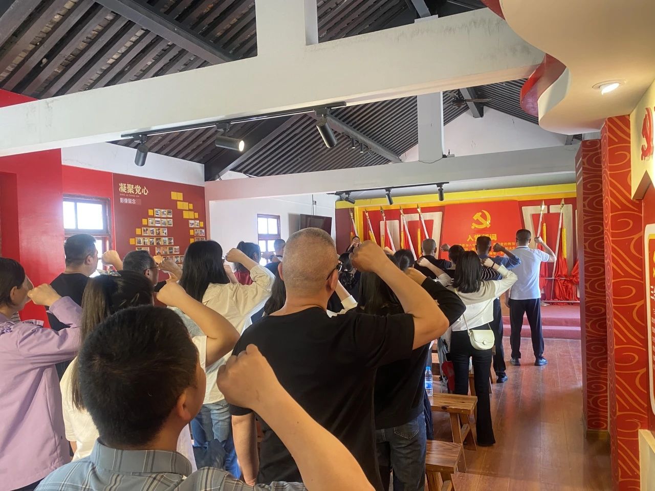 参观结束后,党总支书记郑忠盛同志与全体党员共勉:全面从严治党一直在路上,党的自我革命永远在路上,面对新征程上的新挑战新考验,党员同志们必须高度警省,守纪律,讲规矩,做政治上的明白人、纪律上的清醒人、作风上的实在人。随后他作为领誓人,带领全体党员庄严宣誓,用铮铮誓词宣示对马克思主义的信仰。