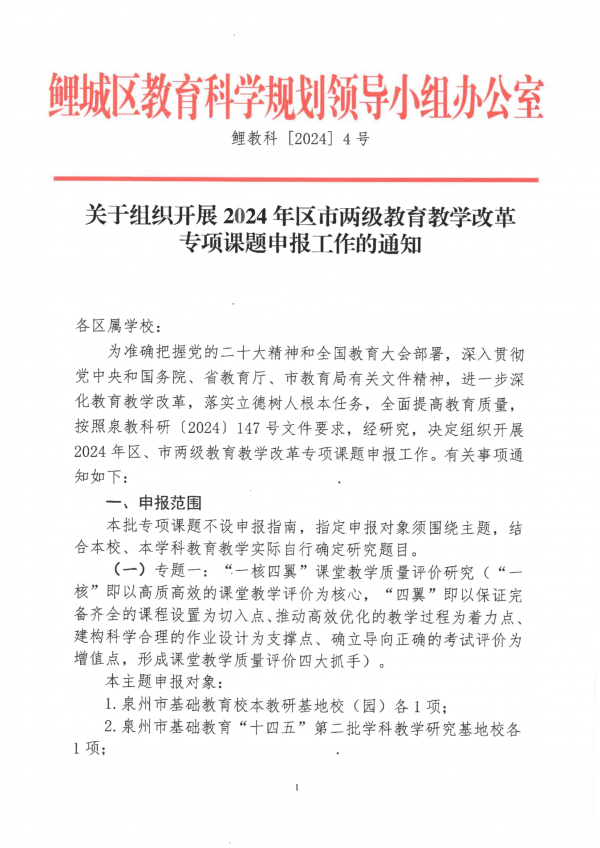 鲤教科【2024】4号 关于做好2024年度区市两级教育教学改革专项课题申报工作的通知.pdf