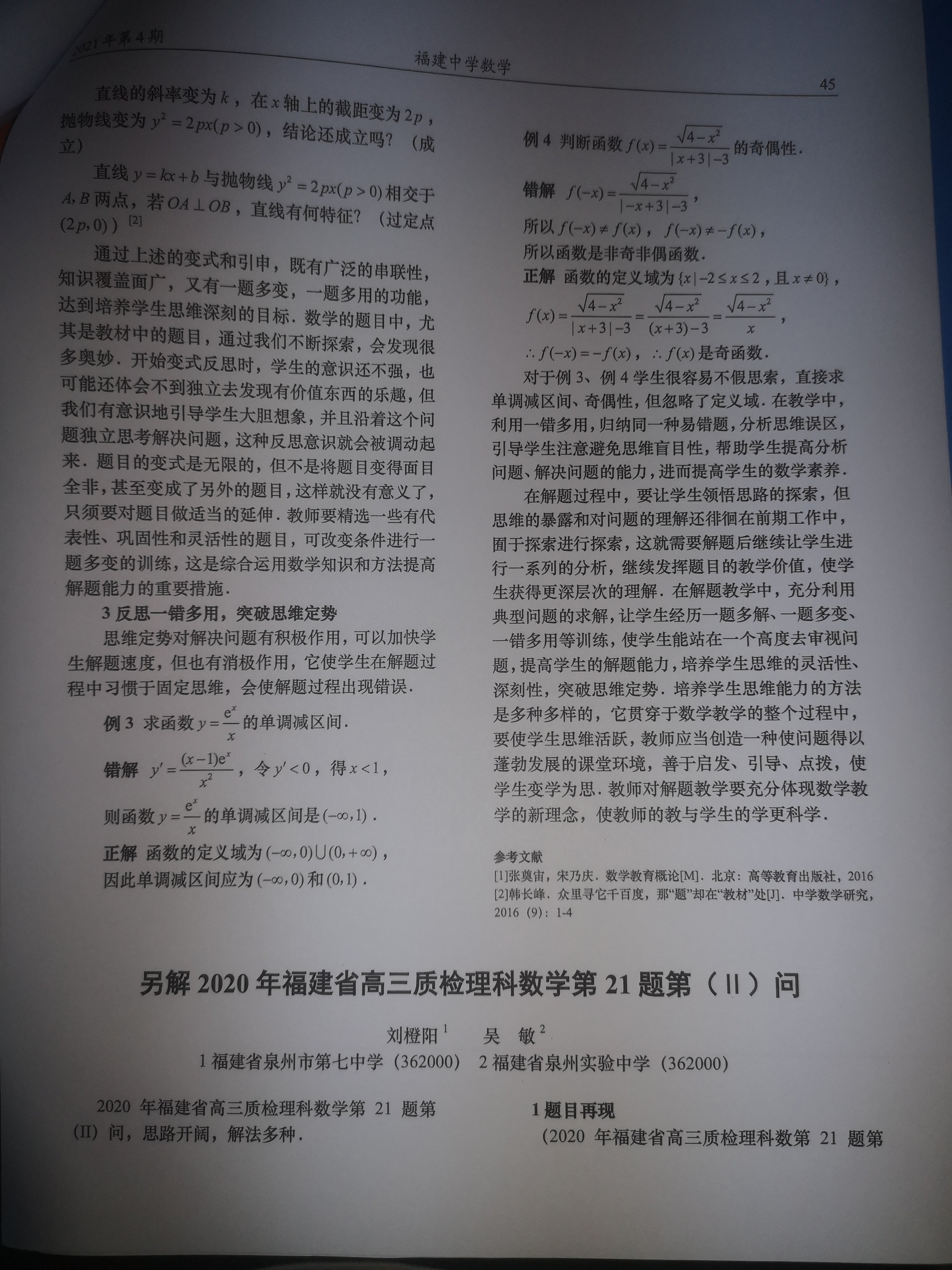 202104【数学组】刘橙阳《另解2020年福建省高三质检理科数学第21题第(II)问》